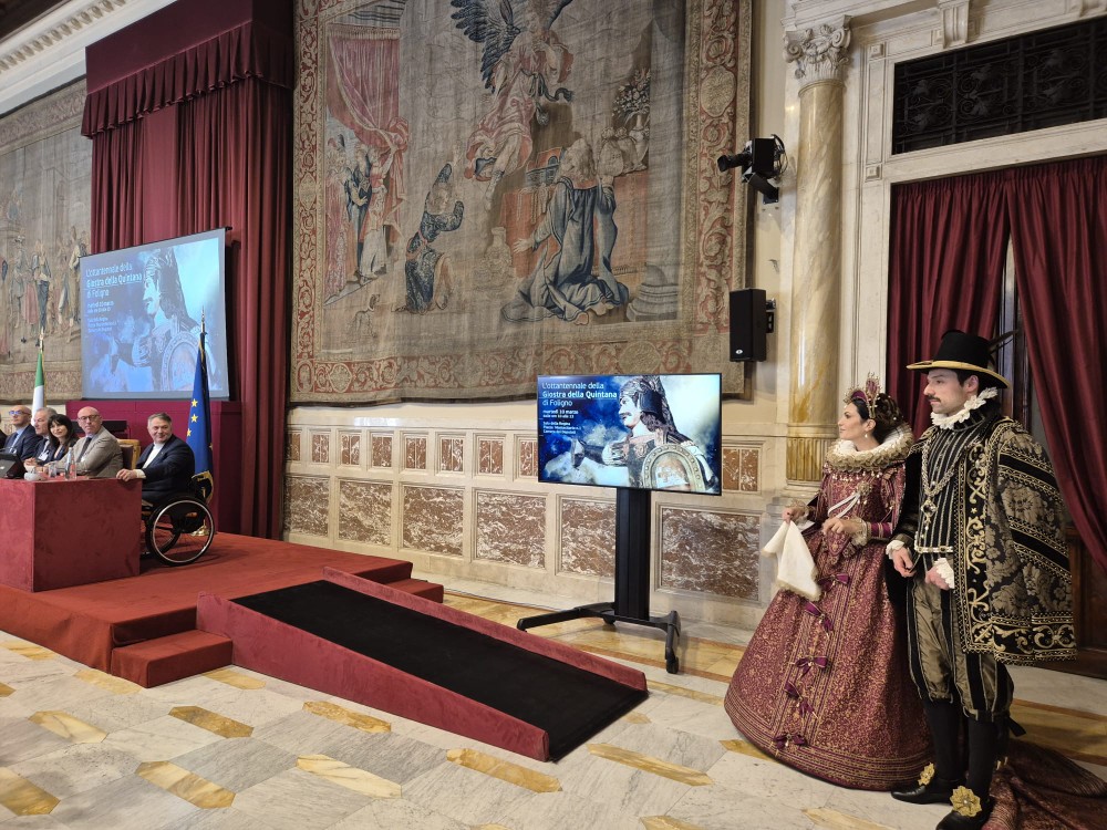 Sono iniziate in grande stile le celebrazioni per l’Ottantennale della Giostra della Quintana di Foligno, con la presentazione ufficiale alla Camera dei Deputati. Nella prestigiosa Sala della Regina, quintanari e istituzioni sono stati ospiti d’onore e per la prima volta nella storia dame e cavalieri in abiti barocchi hanno sfilato all’interno di Montecitorio. Una sala gremita, per un evento che è già destinato ad entrare nel libro d’oro della manifestazione.