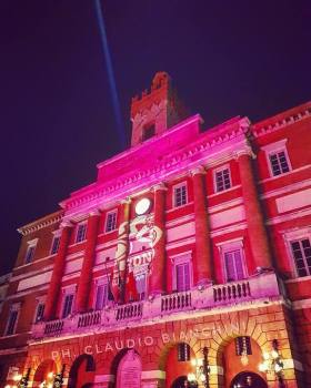 E mentre sta per scattare il conto alla rovescia, la facciata principale del Palazzo Comunale di Foligno si è illuminata completamente di rosa con il logo della tappa folignate a dominare la città.