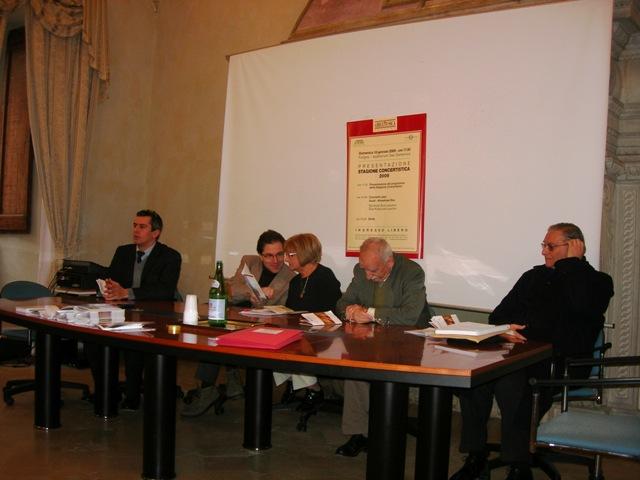 E' stato il direttore artistico Marco Scolastra ad illustrare ai presenti tutti gli appuntamenti della stagione concertistica, a partire da “domani, domenica 18 gennaio quando si esibirà all'Auditorium Giovanni Guidi, un grande pianista jazz, che nonostante la sua giovane età è tra i pianisti italiani più interessanti ed originali. Sabato 31 gennaio un oratorio drammatico in tre parti dedicato al VII centenario della morte della Beata Angela da Foligno, musicato da Carlo Pedini e curato nei testi da Padre Domenico Alfonsi. Domenica 15 febbraio si esibirà, sempre all'Auditorium la più grande pianista italiana del ‘900 Lya De Barberiis, che inizierà proprio a Foligno il tour concerto per il suo 90° compleanno. Il 1° marzo la stagione si sposta ad Ancona, al teatro delle Muse per l'opera Lirica il Rigoletto.Il 15 marzo è la volta di “in..canto d'amore”, antiche arie della terrra di Napoli da Partenope ai nostri gioni, interpretate dal mezzo soprano Patrizia Porzio e dal pianista Marco Schiavo. Sabato 28 marzo “Capolavori di Johann Sebastian Bach” dell'Accademia barocca “W. Hermans”. Domenica 19 aprile “la musica dei numeri e i numeri della musica”un incontro sperimentale in collaborazione con il Laboratorio di Scienze Sperimentali di foligno che vedrà l'incontro fra il più grande matematico italiano Piergiorgio Odifreddi e il pianista Roberto Cognazzo. Domenica 17 maggio lo spettacolo “integrale dei trii di Schumann e Brahms” del trio Modigliani. Domenica 31 maggio sarà proiettata la prima assoluta “l'Umbria segreta di Arturo Benedetti Michelangeli” di Patrizia Gracis e Paolo Malizia. Domenica 21 giugno” “Tradizione Colta e Jazz – reciproche contaminazioni” del Bolling Jazz Quartet. Giovedì 30 luglio “el flamenco de Sevilla”. Domenica 18 ottobre il concerto cameristico dei Solisti del Collegium Novum Zurich. Mercoledì 4 novembre sarà poi la volta del concerto sinfonico della “Berliner Symphoniker Orchester”, diretta da Lior Shambadal. Per finire, domenica 6 dicembre la prima assoluta dello spettacolo “Un artista del popolo?” un concerto per Dmtrij Sostakovic”.