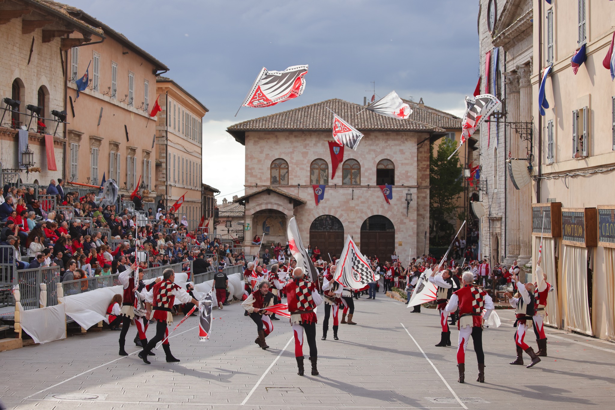 Gli Sbandieratori di Assisi nacquero nell’ottobre del 1975 per l’iniziativa di alcuni giovani sensibilmente attaccati alle tradizioni ed alle manifestazioni popolari umbre, in particolare quelle della loro città: ancora oggi tengono alto il nome di Assisi, e nella giornata di venerdì, oltre a un momento di grande spettacolo con anche l’esibizione di alcuni storici sbandieratori, non è mancato un ricordo dei fondatori e degli ispiratori purtroppo scomparsi, tra cui Sandro “Happy” Ciarulli, storico speaker del gruppo, ma anche Massimiliano Erzetti, Andrea Fucchi, Alessandro Masci, Marco Salimbeti e Alberto Tacconi. A settembre, come da annuncio social, un nuovo momento celebrativo.