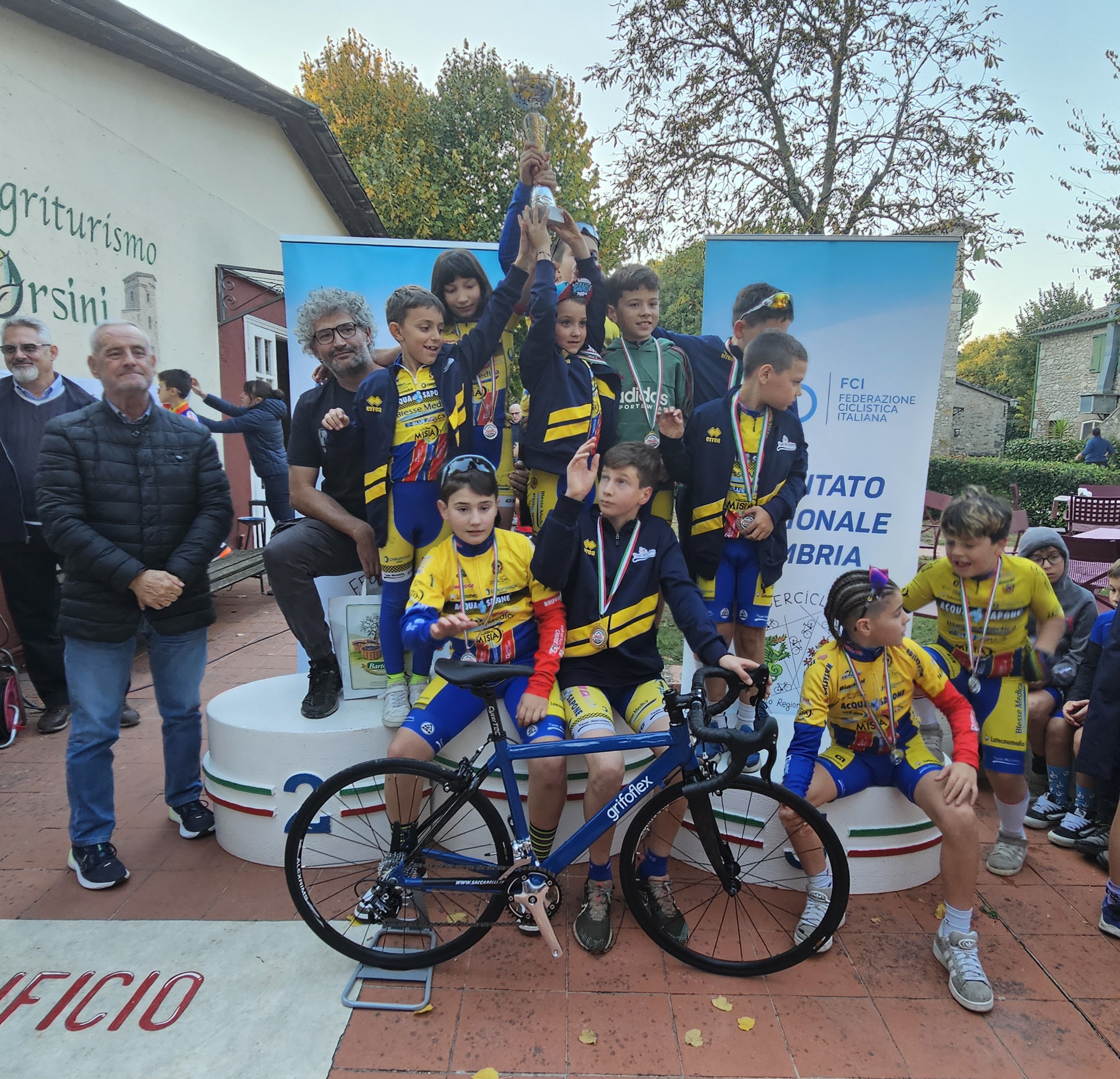 In un clima di festa e aggregazione si sono quindi svolte, al termine delle batterie, le premiazioni finali del Trofeo Grifoflex. Piatto forte della cerimonia le bici, griffate dal title sponsor del circuito, riservate alle prime quattro società della graduatoria finale. Ad aggiudicarsele, tra l’entusiasmo e la gioia dei rispettivi piccoli tesserati, sono state nell’ordine la Gubbio Ciclismo Mocaiana, il Foligno Cycling Team, l’UC Foligno Start e il GS Avis Amelia. Ospiti d’onore della manche finale Luca Spaccini (titolare e ad della Grifo Flex SPA) e Domenico Ignozza (rappresentante comitati territoriali Giunta Nazionale CONI), che hanno espresso tutta la loro approvazione per l’atmosfera che ha accompagnato l’intero pomeriggio. Grande soddisfazione anche per il presidente del CR Umbria della Federciclismo Roberto Cocchieri e per i vice Lucio Saccarelli ed Ernelio Massarucci, presenti sul tracciato sin dalla partenza della prima batteria per assicurarsi della piena riuscita di ogni fase della manifestazione. Appuntamento ora all’edizione 2026 per una nuova giostra dedicata al futuro del movimento regionale.