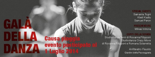 Il 1° luglio arrivano a Terni Kledi, Samanta Togni, Samuel Peron, Mikee Introna per il Galà della Danza (30 anni di danza a Terni). La coreografa Rosanna Filipponi, festeggia il trentennale della Scuola Studiodanza Terni e per l’occasione Tommy Moroni Eventi & Management, realtà molto sensibile all’Arte e alla Cultura del proprio territorio ha deciso di creare intorno a quello che sarebbe stato il “solito” saggio di fine anno accademico, un vero è proprio “Galà della Danza”.