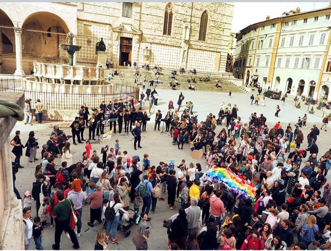 La giornata conclusiva ha regalato un momento di gioia e aggregazione: la Marcetta della Pace. Nonostante il tempo incerto, bambini e famiglie hanno intonato canzoni, per lo più produzioni originali, in Corso Vannucci, celebrando e auspicando la pace nella città che ha visto nascere la bandiera multicolore di Aldo Capitini. E tra i tanti bambini che indossavano i colori della bandiera della pace erano presenti anche rappresentanti del Comune di Perugia, tra cui Francesca Tizi, Assessora all’istruzione, Fabrizio Croce, Assessore allo spettacolo dal vivo e alla città storica, e Lucia Maddoli, consigliera comunale con delega alla pace, cooperazione e non violenza.