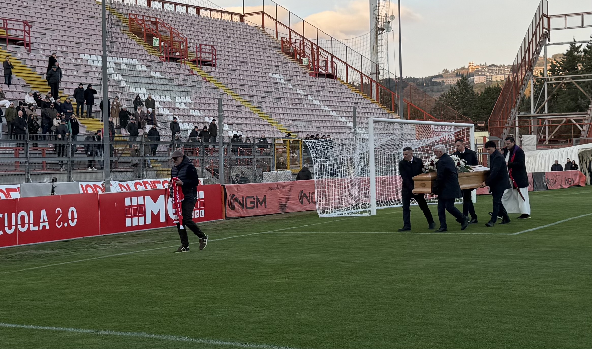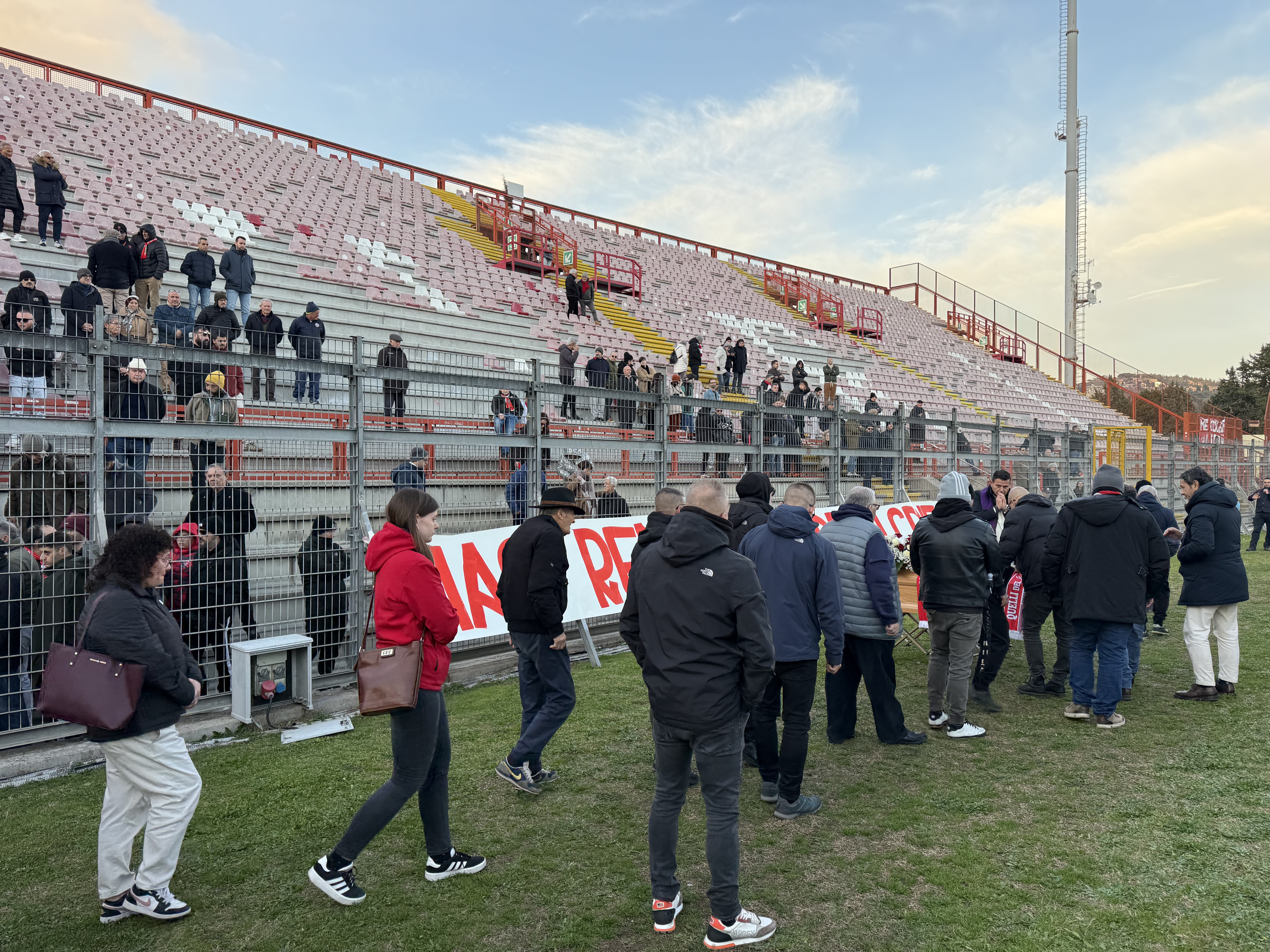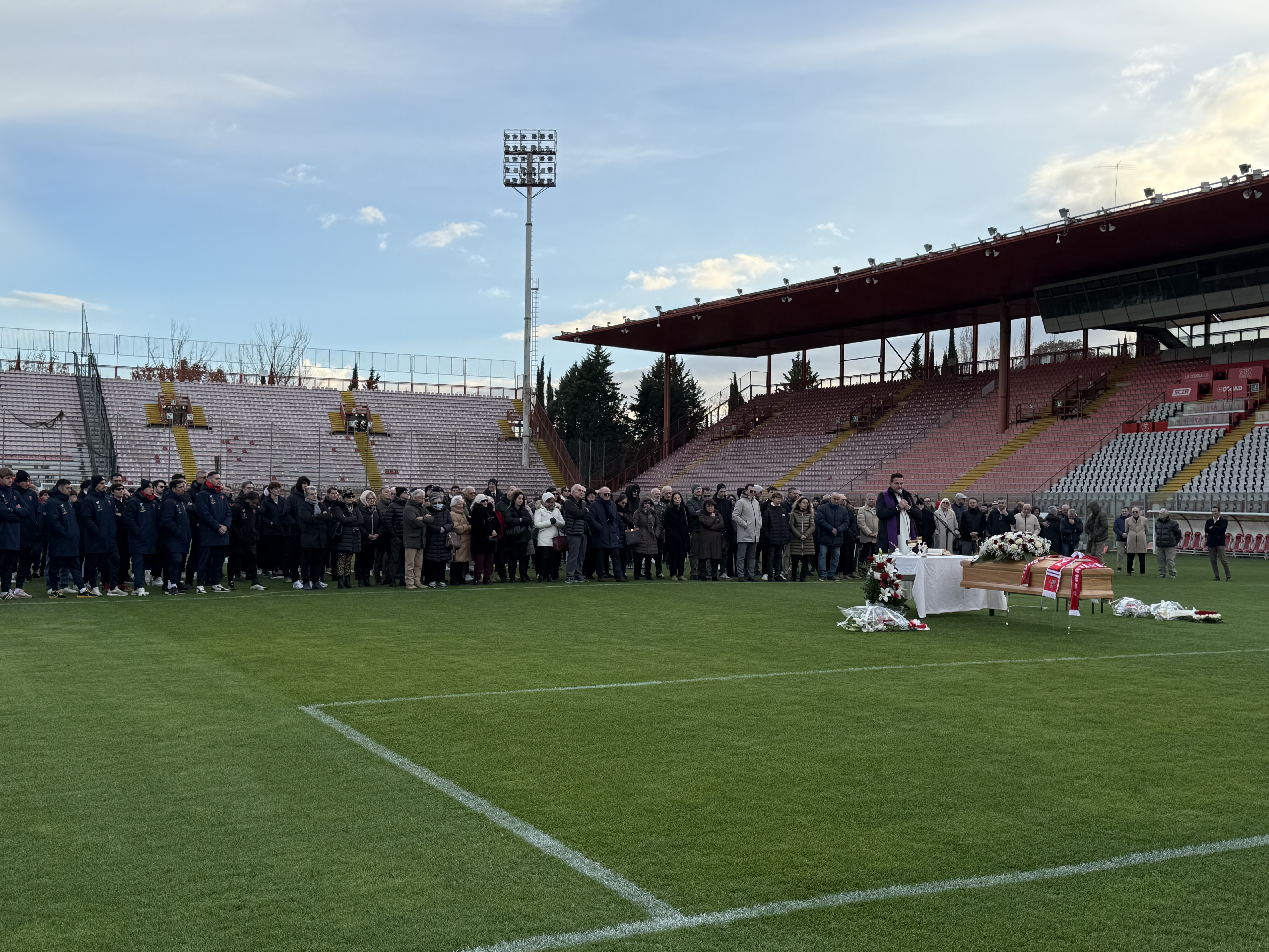 Poi il feretro è stato portato sotto la Curva Nord. Dove sono sfilati, per l’ultimo commosso saluto, i giocatori, tutto lo staff della prima squadra, e poi i tifosi scesi dalla Curva.