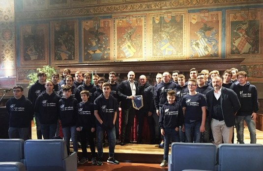 Atleti e dirigenti della Gryphus Pallanuoto Perugia sono stati ricevuti dall’assessore alla Sport, Emanuele Prisco, alla Sala dei Notari. Insieme agli atleti, il presidente del Gryphus Sporting Club Aldo Consolo, l’allenatore Massimiliano Marti con il suo aiuto Paolo Tuteri e il dirigente della società Jean Cicchi