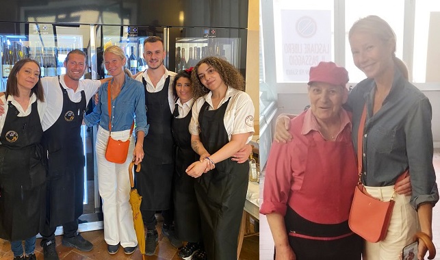 Dal mercato coperto Gwyneth Paltrow è poi passata al vicino ristorante-trattoria gestito da Cristiano e Marco Cuccarini: l’attrice ha infatti voluto pranzare nel cuore della città, posando sorridente per la foto di rito con tutto lo staff del locale, che l’ha accolta nel migliore dei modi.