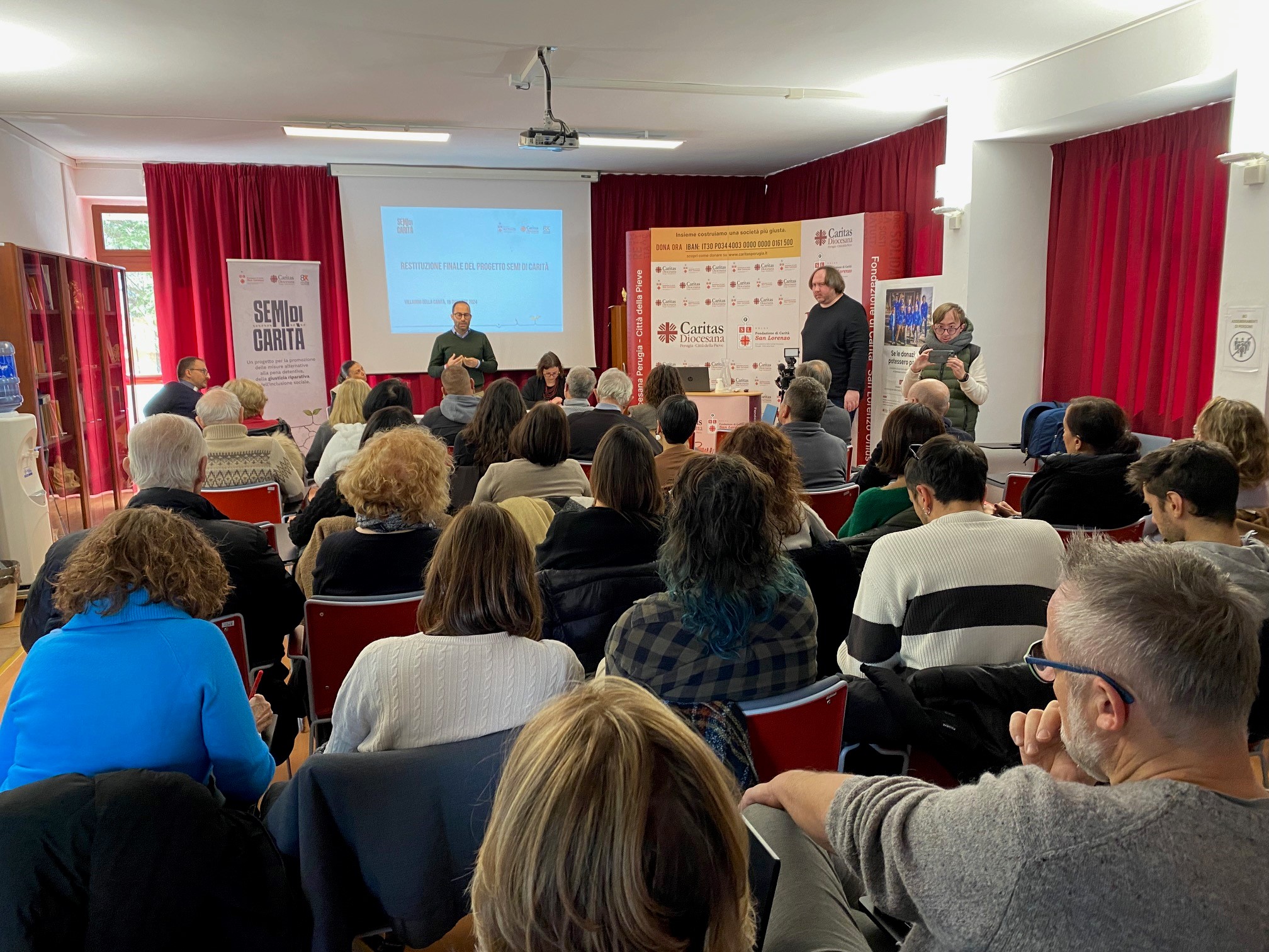 «Condividere i risultati di un anno di cammino di un progetto non è un punto di arrivo, ma è un punto di partenza. Vedere cosa siamo riusciti a vivere con tutte le realtà coinvolte, oggi qui rappresentate, è iniziare subito a pensare quello che sarà il futuro. Non possiamo permetterci di fermarci su questa riflessione così bella e così importante che ci ha accompagnato in un progetto che è stato generativo oltre l’immaginario, generando tante occasioni e progetti, anche in piccoli ambiti, che stiamo portando avanti con passione e non limitati ad una serie di azioni messe in atto incontro dopo incontro. E’ la passione e il desiderio di continuare il prossimo anno ad ampliare diversi percorsi che hanno al centro la Giustizia riparativa e le pene alternative». A sottolinearlo è stato il direttore della Caritas diocesana don Marco Briziarelli introducendo l’incontro di presentazione dei frutti-risultati del progetto “Semi di Carità” a sostegno della Giustizia riparativa, finanziato con fondi CEI 8xmille e dalla Fondazione di Carità San Lorenzo, l’ente operativo della Caritas diocesana; progetto avviato a fine 2023 e concluso a dicembre 2024.