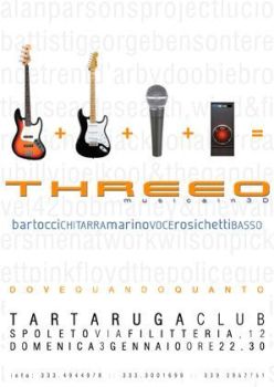 I Threeo inaugurano la stagione live 2010 della Tartaruga Club con i più grandi successi italiani ed internazionali degli anni '70 e '80. Domani, domenica 3 Gennaio dalle 22.30, Alessandro Bartocci, Valerio Marino, Paolo Rosichetti, accenderanno il preserata della Tartaruga con i ritmi funky e rock dei pezzi più amati, ma anche con tantissime “chicche” che abitualmente rimangono nei cassetti delle cover band.