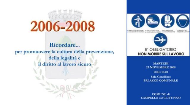 La carovana del lavoro sicuro fa tappa a Campello sul Clitunno. Il prossimo 25 novembre, esattamente a due anni dal drammatico incidente presso la Umbria Olii S.p.a. in cui persero la vita quattro operai, Campello si ferma per ricordare ed insieme per promuovere la cultura della prevenzione e della legalità ed il diritto ad un lavoro sicuro.