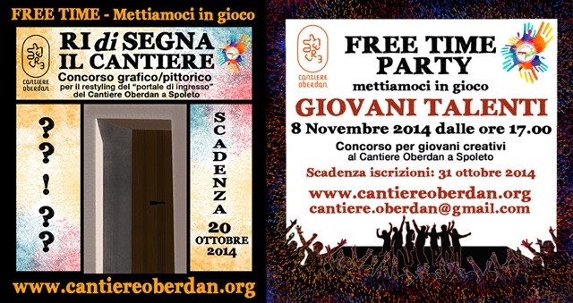 Il Cantiere Oberdan e la Pastorale Giovanile con la collaborazione del Comune di Spoleto lanciano il progetto “Free time – mettiamoci in gioco” una serie di attivitàaggregative e creative in cui siano protagonisti i giovani della nostra città.In particolare il progetto prevede: