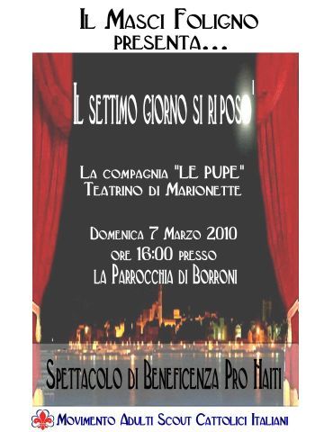 Domenica 7 Marzo, nella sala parrocchiale di Borroni ci sarà uno spettacolo di burattini realizzato del MASCI (Movimento Adulti Scout Cattolici Italiani) di Foligno.