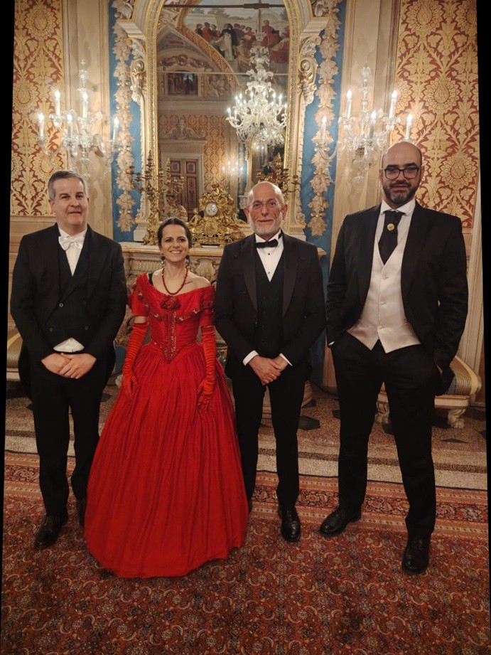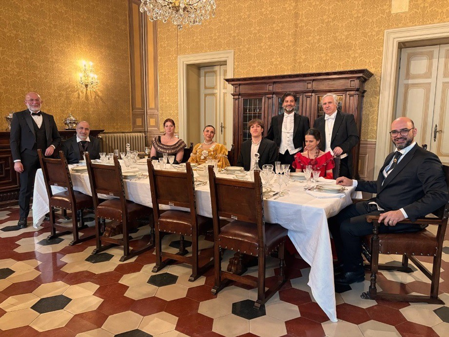 Le sale storiche del Palazzo della Prefettura (costruito tra il 1876 e il 1873 sopra i resti della Rocca Paolina) si sono animate in un affascinante viaggio nella seconda metà del XIX secolo, tra musica, eleganza e scene di vita quotidiana. Sotto la guida del direttore artistico del Palio Fausto Marchini, figuranti e interpreti hanno dato vita ad esperienze immersive: dal salone da ballo con il valzer, alle conversazioni tra nobili nella sala da the, nel loggiato e nella sala riunioni, fino alle ricostruzioni conviviali a tavola nella sala da pranzo. Un’esperienza capace di trasportare i visitatori nel cuore della Perugia postunitaria, rendendoli, in alcuni momenti, parte attiva della scena.