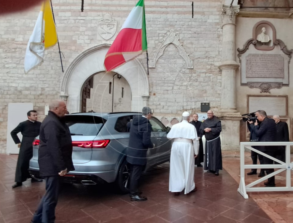 Seguirà l’incontro con i vescovi nella Basilica di Santa Maria degli Angeli: non è prevista la presenza della stampa, ma il Papa ha incontrato i fedeli sul sagrato della basilica angelana. “Ringrazio vivamente il Cardinale Presidente per le parole di saluto che mi ha rivolto e per l’invito a essere con voi oggi per concludere l’81ª Assemblea Generale. E sono contento di questa mia prima sosta, seppur brevissima, ad Assisi, luogo altamente significativo per il messaggio di fede, fraternità e pace che trasmette, di cui il mondo ha urgente bisogno”, l’incipit del suo discorso. “Qui San Francesco ricevette dal Signore la rivelazione di dover «vivere secondo la forma del santo Vangelo» (2Test 14: FF 116). Il Cristo, infatti, «che era ricco sopra ogni altra cosa, volle scegliere in questo mondo, insieme alla beatissima Vergine, sua madre, la povertà» (2Lf 5: FF 182). Guardare a Gesù è la prima cosa a cui anche noi siamo chiamati. La ragione del nostro essere qui, infatti, è la fede in Lui, crocifisso e risorto”, ancora le parole del Papa.