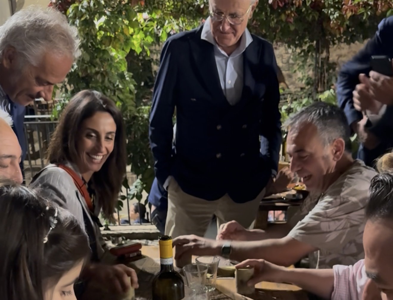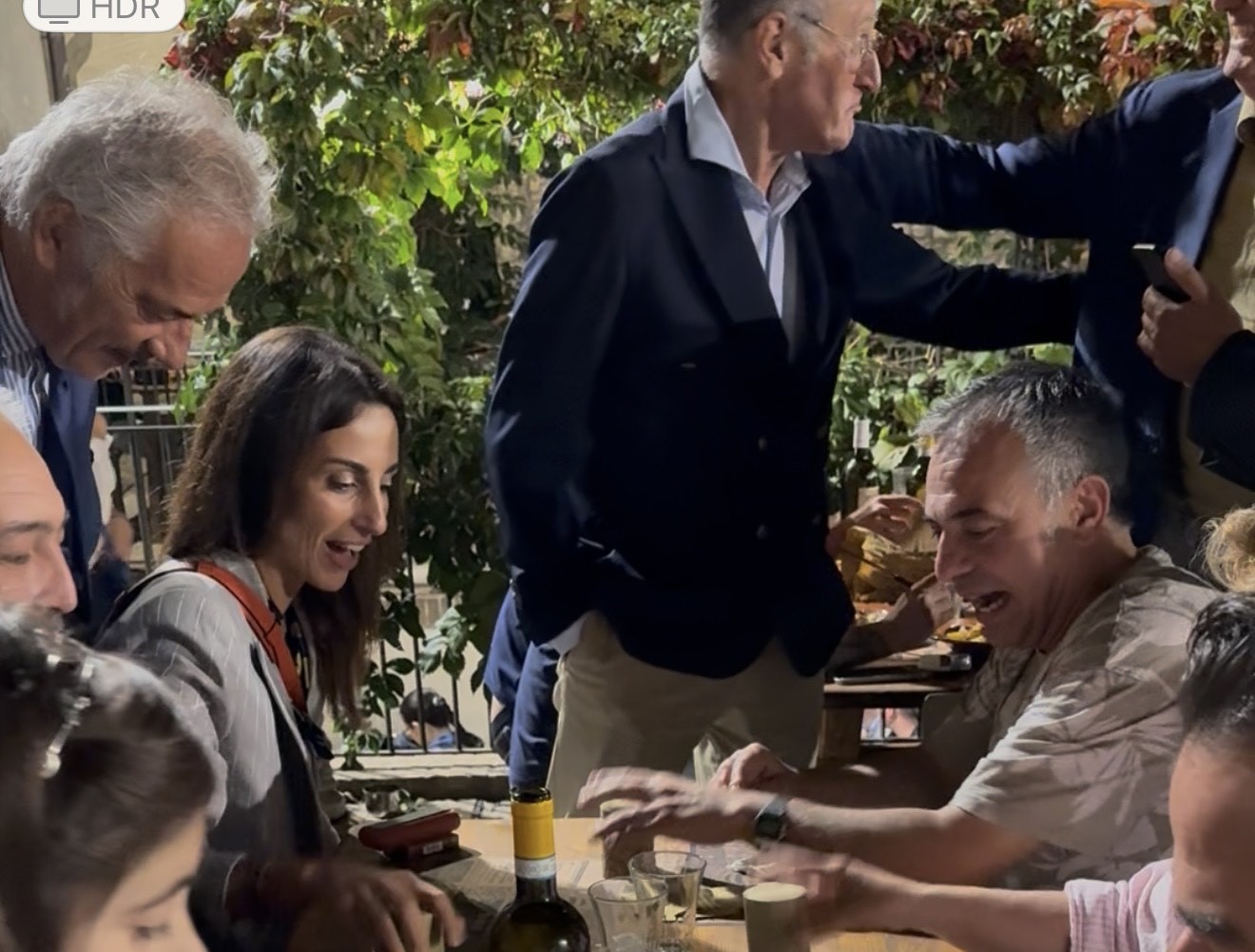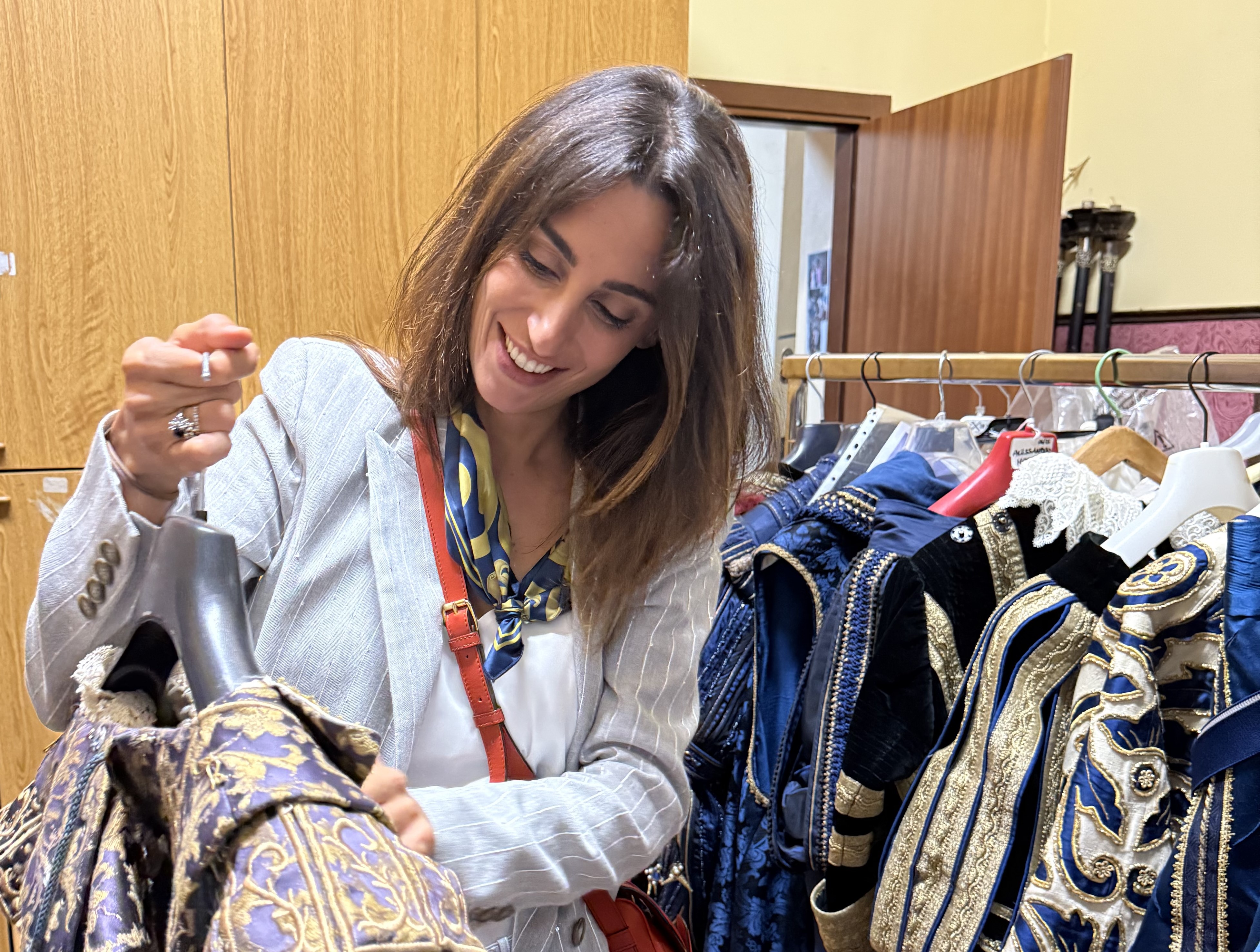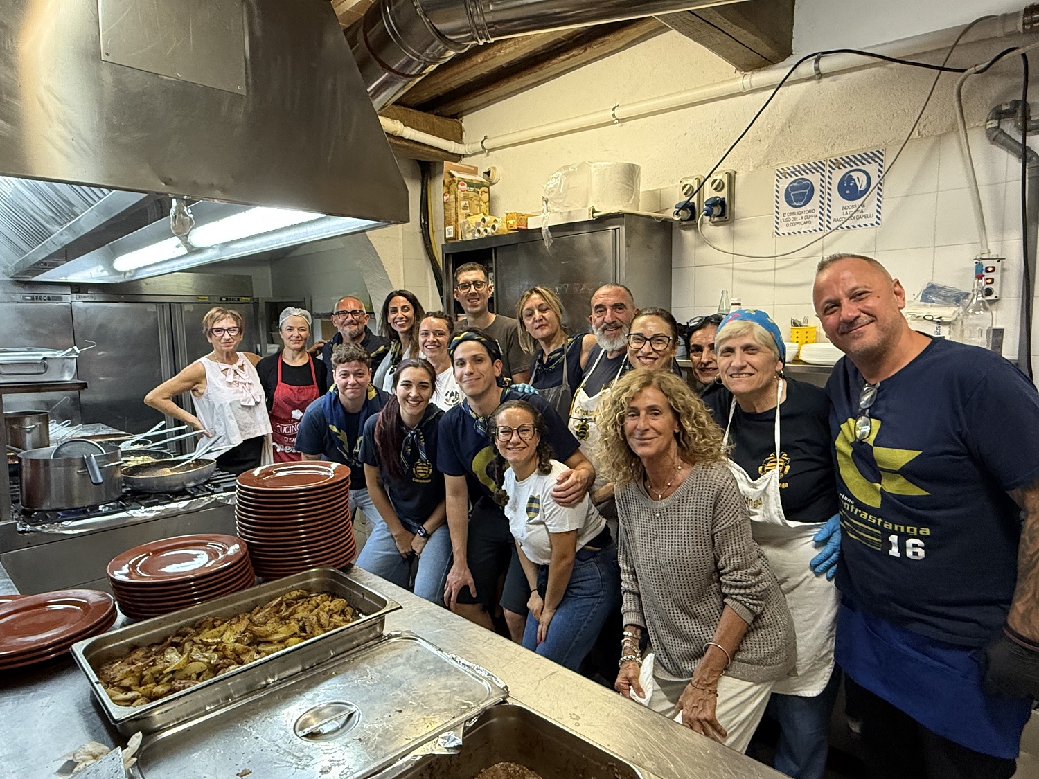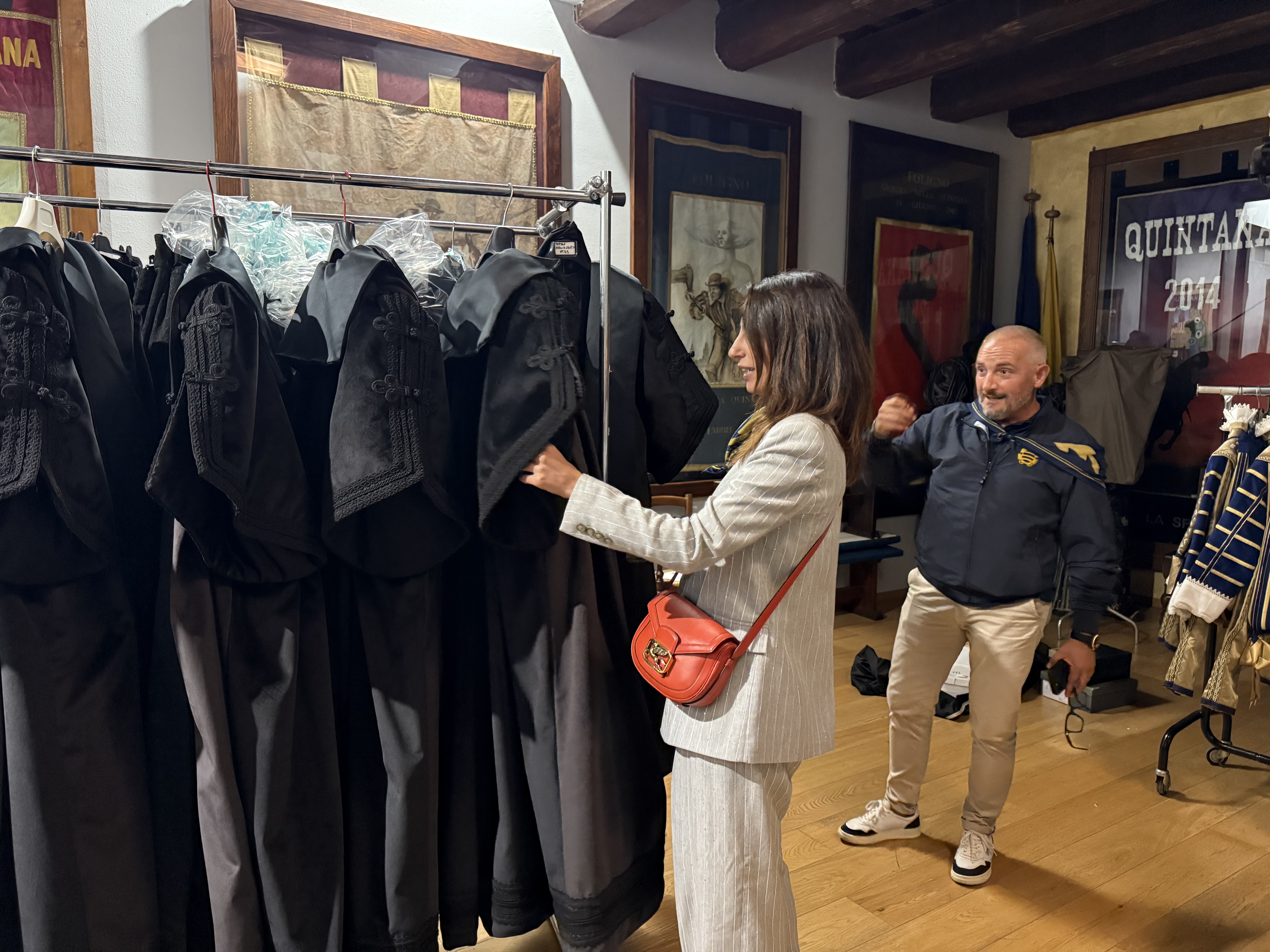 Dopo la cerimonia a Palazzo Candiotti alla presenza delle autorità comunali (al tavolo il vicesindaco Riccardo Meloni e l’assessore Alessandra Leoni) e della famiglia Picuti, e le foto ricordo con gli ammiratori, Giorgia Cardinaletti, insieme a Sergio Casagrande, ha cenato nella taverna del rione Contrastanga, dove è stata coinvolta nella festa di popolo quintanara, tra antiche ricette, canzoni, simpatiche foto in cucina e giochi (ha anche provato la goliardica Gara della Filome’, ma per questa volta senza alcol…). Dopo gli aneddoti ed i racconti a tavola sul valore sociale della Quintana, che nella Giostra finale ha solo il suo culmine, accompagnata dal presidente Metelli e dal priore del Contrastanga Carlo Mattioli, Giorgia Cardinaletti ha potuto ammirare gli splendidi ed accurati rifacimenti di sartoria degli abiti seicentesti con i quali sfilano le dame e gli altri figuranti del Corteo storico della Quintana. Abiti che magari potrà indossare in una delle prossime edizioni della Giostra della Quintana.