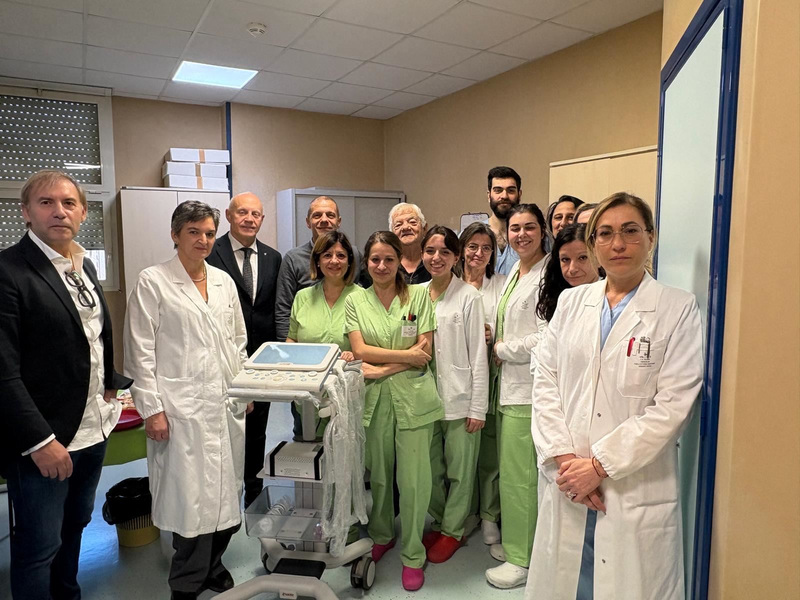 E’ stata consegnata ieri mattina, al reparto di Nefrologia e Dialisi dell’ospedale di Foligno diretto dalla dr.ssa Paola Vittoria Santirosi, un’apparecchiatura ecografica dotata di ecografo portatile, due sonde, carrello e stampante, di grande utilità per i sanitari, che consente un ulteriore ammodernamento tecnologico della struttura. L’apparecchiatura avrà un utilizzo multispecialistico, all’interno della sezione multidisciplinare di degenza, sia da parte del personale medico che del personale infermieristico, direttamente a letto del malato.