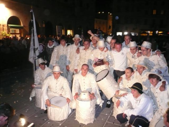 E' stato il rione Pugilli, seguito dal rione Cassero e dal rione La Mora – rispettivamente secondo e terzo classificato – ad aggiudicarsi la quarta edizione dell'ormai attesissimo appuntamento quintanaro della “Gara dei Tamburini” dei dieci rioni e del Comitato centrale, svoltosi ieri sera in una gremitissima piazza della Repubblica. Il cuore di Foligno ha accolto in un tripudio di colori, bandiere e suoni barocchi la sfida a colpi di pistilli e mazzette degli oltre cento tamburini, considerati da sempre “colonna sonora” e vera anima pulsante della Giostra della Quintana. Il numerosissimo pubblico accorso ha avuto modo di apprezzare le esibizioni di ciascun gruppo, attento ad eseguire al meglio il proprio brano senza perdere di vista tutti gli altri parametri di valutazione tenuti presenti dalla giuria di esperti presieduta dal Maestro Mario De Santis e composta per l'occasione da Paolo Giri, direttore della Scuola comunale di musica di Foligno, da Leonardo Ramadori e Gianni Maestrucci percussionisti del gruppo “Tetraktis” di Perugia e dal maestro Filippo Salemmi, direttore del gruppo “Musica Antica” di Bevagna. E' stato il rione Contrastanga a dare inizio ad una competizione che ha visto esibirsi in suoni e coreografie molto ricercate i cento tamburini, accompagnati dagli Alfieri delle proprie contrade. Alla fine ad aggiudicarsi con un'esibizione impeccabile il titolo di “più bravo fra i bravi” è stato il rione Pugilli, forte già del recente successo riportato in questo 2009 nel torneo regionale di Valtopina. Ecco i nomi dei quattordici tamburini vincitori guidati dal capo tamburino Marco Properzi: Matteo Cavaterra, Marco Bartocci, Giampaolo Milei, Ismaele Zampagnini, Leonardo Bucci, Cristian Maccari, Marco Tamburini, Matteo Menichelli, Elia Fedele, Giacomo Ciancaleoni, Federico Bizzarri, Samuele Battauscia e Mirco Rutili. Prima della conclusione dell'evento e in attesa del verdetto finale, la serata ha regalato ai presenti altri momenti di spettacolo quintanaro, quale assaggio a quanto ci si appresterà a vivere nel corteo storico di sabato e nella giostra di domenica. I cento tamburini dei dieci Rioni infatti – coordinati dal gruppo di tamburini dell'Ente Giostra – hanno eseguito il cosiddetto “suono comune” riempiendo ancora piazza della Repubblica con ritmiche e percussioni barocche altamente suggestive. Ma la vera sorpresa finale è stata affidata all'esibizione degli sbandieratori del Pugilli e alle loro acrobatiche coreografie che hanno colorato la piazza con il lancio delle bandiere. A conclusione della serata la premiazione del primo classificato è stata affidata al ppresidente della Commissione Artistica dell'Ente Giostra, Stefano Trabalza, mentre a presiedere la consegna del riconoscimento per il secondo e terzo classificato sono stati rispettivamente Giovanni Bosi, magistrato per i rapporti con i media e promozione dell'immagine, e Lucio Cacace, magistrato responsabile per i rapporti con i Rioni e attività collaterali. La serata è stata condotta da Mario Lai. E intanto cresce l'attesa per il corteo storico e la Giostra al Campo de li Giochi. “Qual de' Rioni appagherà il desio di tor di mano al Cavalier de La Mora il lauro cinto in ultima tenzone?”: è l'interrogativo che alla vigilia della Giostra della Quintana di Foligno appassiona inevitabilmente non solo i quintanari in senso stretto, ma l'intera città. Quella di domani, sarà infatti la vigilia dell'evento più atteso, la Rivincita al “Campo de li giochi”, con un appuntamento canonico ed irrinunciabile: il Corteo Storico, preceduto dal cerimoniale in Piazza Grande messo a punto dalla Commissione artistica presieduta dall'architetto Stefano Trabalza. E per settembre torna anche l'elezione del Masgalano (in un primo momento cancellata) ovvero il Cavaliere più elegante, al termine del corteo, quando Piazza Grande tornerà ad essere gremita non solo dal pubblico ma anche dai personaggi del Comitato centrale e dei dieci rioni. Si comincerà alle ore 21 con l'esibizione degli sbandieratori del rione La Mora e del rione Pugilli, cui farà seguito l'arrivo delle rappresentanze rionali e dell'Ente Giostra; quest'ultima raggiungerà in corteo Piazza della Repubblica passando per piazza San Domenico, via Mazzini e largo Carducci. Il presidente dell'Ente Giostra Domenico Metelli ed il sindaco Nando Mismetti rivolgeranno il loro saluto alla città e quindi passerà all'arruolamento e alla benedizione dei cavalieri di giostra da parte del Vescovo monsignor Gualtiero Sigismondi; il cavaliere del Pugilli farà il suo ingresso con la lancia d'argento che ricorda Marcello Formica. Da largo Carducci, accompagnato da musiche rinascimentali, entrerà in Piazza Grande il carro della Quintana, preceduto dai Cavalieri all'eroica dell'Ente Giostra, dal maestro di campo Piero Cruciani e dai dieci Cavalieri di giostra, che si posizioneranno al centro della piazza, dove suonerà dal vivo il gruppo “La Capriciata”. Si procederà a quel punto al sorteggio dell'ordine di gara della “Giostra della Rivincita”: dal “bossolo” il magistrato Stefano Trabalza estrarrà un cartiglio alla volta e lo porgerà al segretario generale Andrea Petterini, il quale leggerà ad alta voce il rione che gareggerà per primo e così di seguito fino all'ultimo. Terminato il cerimoniale, i personaggi negli splendidi abiti barocchi si prepareranno per il corteo storico, che seguirà questo percorso: Piazza del Grano, via della Piazza del Grano, via XX Settembre, piazza San Giacomo, via Corso Nuovo, via Gentile da Foligno, piazza Faloci Pulignani, piazza della Repubblica, via Gramsci, piazza San Domenico, via Mazzini, via Cairoli, viale Chiavellati, Porta Romana, corso Cavour, via Piermarini, via Umberto I, via Garibaldi, largo Carducci, piazza della Repubblica. Al rientro del corteo in Piazza Grande si terrà la premiazione del Masgalano, scelto dall'apposita commissione. Grande attesa c'è anche per Martina Colomb