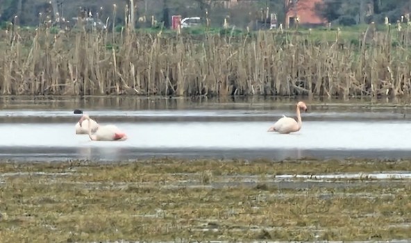 Tre curiose macchie rosa nel grigiore di febbraio. A distanza di 5 anni dall’incredibile quanto rarissimo avvistamento del marzo 2021, i fenicotteri rosa sono tornati a scegliere l’Altotevere, precisamente, ancora una volta, il Lago di Sacchino a San Romano di Fighille (Citerna), a pochi metri dal confine con il Comune di Sansepolcro.