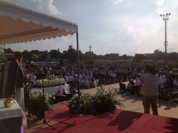 “Tu Andrea continuerai a gareggiare nei circuiti del cielo. Il tuo simbolo è un otto, il simbolo dell'infinito” le parole dello zio Paolo, della zia Catia e Elena,lette alla fine della funzione.