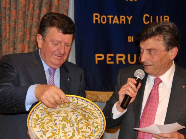 Nella cornice del Plaza Palace Hotel di Perugia, il Presidente del Rotary Club Perugia Alfredo Gallina, anche alla presenza del past governor Mario Bellucci, ha ricevuto il Cavaliere del Lavoro Carlo Colaiacovo, per una conviviale dal tema “Situazione economica in Umbria: interventi della Fondazione Cassa di Risparmio di Perugia”. L’imprenditore, alla presenza di molteplici figure di riferimento del territorio, si è soffermato su temi centrali del nostro paese, indicando l’impresa e la famiglia come le due più grandi malate del giorno d’oggi. Per cercare di risolvere tale problemi si è da tempo attivata anche la Fondazione bancaria da lui presieduta con interventi straordinari a sostegno del ceto medio “ormai scomparso” e dell’impresa sana strozzata – a suo dire – dai “crediti tossici”, ovvero quelli erogati in favore di imprese di fatto spacciate. Il Cav. Colaiacovo – durante questo incontro molto partecipato – ha tracciato, con estrema chiarezza e profonda lucidità, un quadro penetrante sul ruolo che mondo creditizio, imprenditoriale, politico e universitario dovranno assumere per provare a combattere una crisi ancora lunga e piena di insidie. “Dobbiamo tornare a crescere – ha spiegato – con l’aiuto di tutte le istituzioni rimaste nel territorio”.