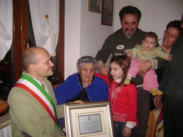 La frazione di Montecchio ha festeggiato lunedì scorso i 100 anni di una sua arzilla compaesana, Terzilla Spinetti, nata a Todi il 21 dicembre 1909. Ai parenti e agli amici che hanno voluto testimoniare con la loro presenza l'affetto per la centenaria si sono aggiunti il parroco Don Giuseppe, la Banda del paese e il Sindaco Paolo Morbidoni che ha consegnato a Terzilla una targa con auguri “particolari”, a nome dell'intera comunità di Giano dell'Umbria.