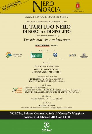 Fortunatamente aria diversa può respirare l’Associazione Pietro Fontana in Valnerina ed in particolare a Norcia dove Domenico Manna ha sempre goduto di grande interesse e sensibilità nei confronti delle tesi da lui sostenute. Ed è quindi a Norcia, in Comune, che il 24 febbraio Manna presenterà il suo libro Il Tartufo nero di Norcia o di Spoleto (Tuber melanosporum Vitt.) – Vicende Storiche e coltivazione. L’evento è inserito all’interno del Programma di Nero Norcia, la ormai consolidata manifestazione dedicata al re nero dell’Umbria, giunta quest’anno alla sua 50esima edizione. Il Primo cittadino Gian Paolo Stefanelli e il Presidente del Cedrav Pietro Bellini interverranno per le istituzioni mentre il Direttore del Cedrav, Fulvio Porena, coordinerà i lavori. Al tavolo, accanto all’autore del libro, Gerard Chevalier, il più importate studioso al mondo di tartuficoltura nonché autore della prefazione del volume e da sempre, lui che è una vera autorità, sostenitore delle ricerche e delle scoperte di Domenico Manna. Chevalier definisce il volume “un lavoro eccellente che esce dall'ordinario dai soliti libri sul tartufo e apporta nuova linfa”.