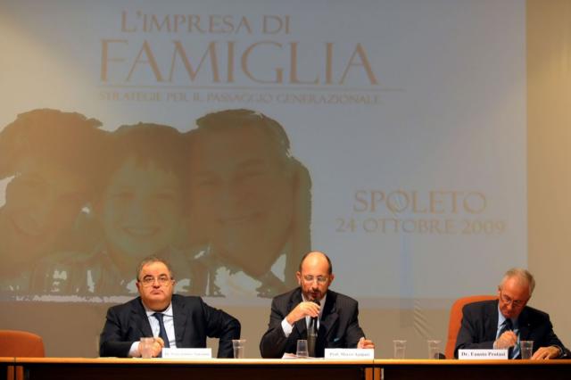 La Sala Congressi dell'Istituto Sovrintendenti della Polizia di Stato di Spoleto ha ospitato, oggi, i tanti partecipanti intervenuti al convegno “L'impresa di famiglia, strategie per il passaggio generazionale”, organizzato dalla Banca Popolare di Spoleto, la Spoleto Credito e Servizi, dal Centro Studi G. Romano e M. Montioni e dalla Pricewaterhouse Coopers. Quello del family business è un tema, come ha esordito il professor Marco Agujari, presidente del Centro Studi, scelto sulla base del contesto economico umbro e della volontà di trattare un argomento molto attuale anche nel panorama nazionale ma ancora poco sviluppato e conosciuto dal punto di vista giuridico-economico, soprattutto da parte del destinatario “impresa”.