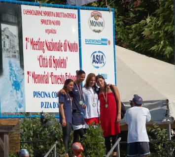 “Sono molto soddisfatto – ha detto l'assessore allo sport Gilberto Stella – per questo evento che ha richiamato in città tantissimi atleti, i loro allenatori e familiari. I miei complimenti all'organizzazione, a tutti gli atleti e in particolare a quelli spoletini”. Due su tutti i 'locali' che si sono messi in luce. Giulia Canolla (Spoleto Nuoto) ha vinto i 50 rana in 32'89″, conquistando la terza prestazione italiana dell'anno, e Matteo Montesi (tesserato oggi con la D.D.S. Milano) che ha vinto i 50 stile in 23'48″, tempo che gli consente di guadagnare l'accesso alla finale ai Campionati Assoluti.