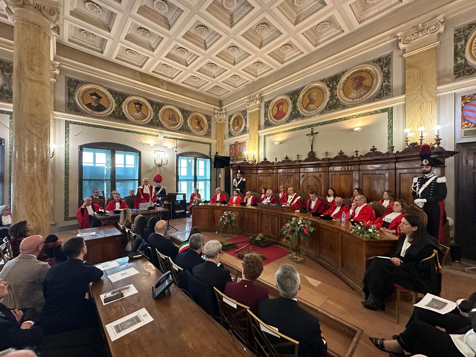 Nell’aula Goretti della Corte d’appello di Perugia si è svolta la cerimonia di inaugurazione dell’anno giudiziario 2026 del distretto umbro. “Dal bilancio, complesso ed articolato, dell’anno giudiziario – le parole del Procuratore Generale presso la Corte d’Appello di Perugia Sergio Sottani – emerge il dato allarmante della recrudescenza di reati quali il traffico di sostanze stupefacenti, violenza di genere nonché furti in abitazione, oltre ad un diffuso aumento delle condotte violente “da strada”.