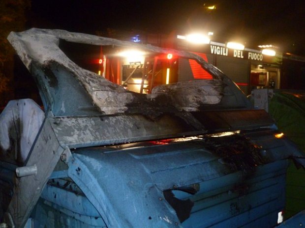 Incendio ai cassonetti di Via Battisti: Vigili del Fuoco non escludono dolo
