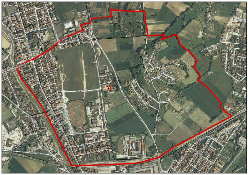 RILEVATO che in via cautelativa, in attesa di eventuali ed ulteriori approfondimenti e di indicazioni da parte di ARPA Umbria ed USL Umbria 2, il presente provvedimento debba applicarsi nell’area perimetrata da ARPA Umbria schematicamente evidenziata nell’Allegato A al presente provvedimento, ovvero compresa tra la linea ferroviaria nel tratto che va dalla fine di Via Pio La Torre al ponte sul Torrente Tessino, il Torrente Tessino, Via della Repubblica nel tratto dal ponte sul Torrente Tessino a Via G. Marconi, Via Visso e zona Colle San Tommaso come da confini mappali evidenziati nella planimetria (allegato A);