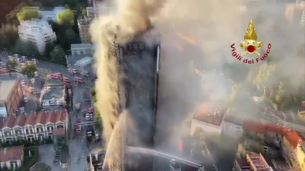 In un video sull’account Twitter dei vigili del fuoco, l’incendio del grattacielo di via Antonini a Milano visto dall’alto. Le fiamme sono sotto controllo. Quindici i mezzi impiegati, oltre 50 i pompieri sul posto.