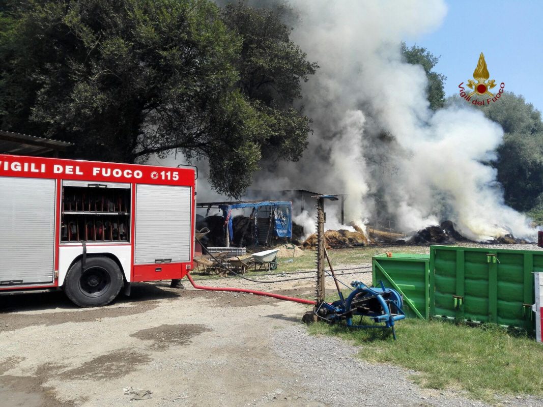 Incendio in un deposito di rotoballe