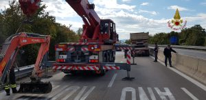 Sul posto stanno operando i Vigili del fuoco del Distaccamento di Foligno per il recupero dell’autocarro che al momento dell’incidente trasportava sul rimorchio un piccolo scavatore. La viabilità risulta ancora bloccata, ma è stato fortunatamente appurato che non ci sono feriti.
