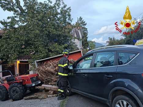 Incidente tra auto e trattore con rimorchio per legna. Ci sono 2 feriti, uno trasferito in ospedale con elisoccorso