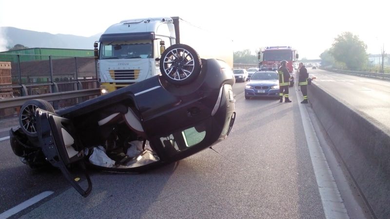 Un grave incidente si è verificato qusta mattina sul raccordo Terni-Orte. Secondo una prima ricostruzione dei fatti, sembra che una Lancia Y si sia schiantata da sola contro le barriere protettive della strada per poi cappottarsi. A bordo dell’auto c’erano due ragazze, entrambe rimaste ferite e trasferite dal “Santa Maria” di Terni da due equipaggi del 118. Sul posto anche la Polstrada e i Vigili Del Fuoco di Terni.