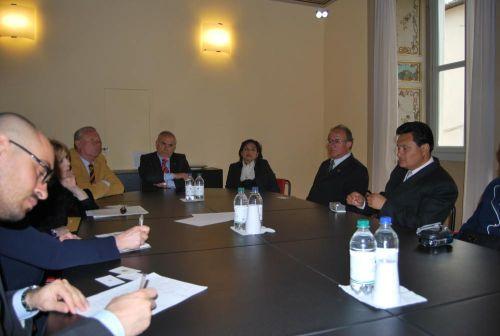 La delegazione peruviana era composta dal Presidente del Governo Regionale di Cajamarca Jesus Coronel Salirrosas, dal Sindaco della Municipalità Provinciale di Cajamarca Marco Aurelio La Torre Sanchez e dal Sindaco della Municipalità distrettuale di Banos del Inca Santos Julio Dàvila Silva. Ha partecipato all'incontro la professoressa Daniella Gambini dell'Università per gli stranieri di Perugia e Rita Galeati, Responsabile Servizio Relazioni internazionali dell'Università per Stranieri di Perugia.