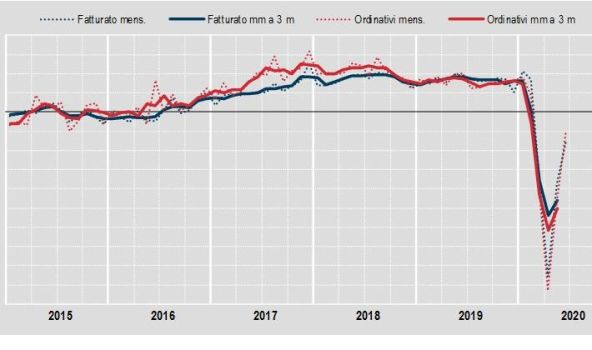 ROMA (ITALPRESS) – A giugno si stima che il fatturato dell’industria, al netto dei fattori stagionali, aumenti del 13,4% rispetto a maggio. Nella media del secondo trimestre l’indice complessivo cala del 23,0% rispetto al trimestre precedente. Lo rileva l’Istat. Anche gli ordinativi registrano a giugno un incremento congiunturale (+23,4%), mentre nella media del secondo trimestre sono diminuiti del 22,8% rispetto al trimestre precedente. La variazione congiunturale del fatturato riflette risultati positivi, di ampiezza simile, registrati su entrambi i mercati: +13,0% quello interno e +14,1% quello estero; per gli ordinativi, invece, la crescita è sostenuta soprattutto dalle commesse provenienti dal mercato interno, che segnano un balzo del 26,4%, mentre l’aumento di quelle provenienti dall’estero si attesta al 19,1%. Con riferimento ai raggruppamenti principali di industrie, a giugno gli indici destagionalizzati del fatturato segnano aumenti congiunturali diffusi in tutti i comparti: +21,3% l’energia, +14,3% i beni di consumo, +13,4% i beni strumentali e, infine, +11,4% i beni intermedi.