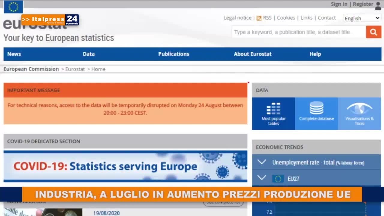 A luglio 2020 i prezzi alla produzione dell’industria sono aumentati rispetto al mese precedente dello 0,6% nell’area dell’euro e dello 0,4% nell’Unione Europea, secondo le stime di Eurostat. A giugno i prezzi erano aumentati dello 0,7% nell’area dell’euro e dello 0,8% nell’UE. A luglio, su base annua, c’è stato invece un calo del 3,3% nell’area dell’euro e del 3% nell’Unione Europea. sat/mrv/red