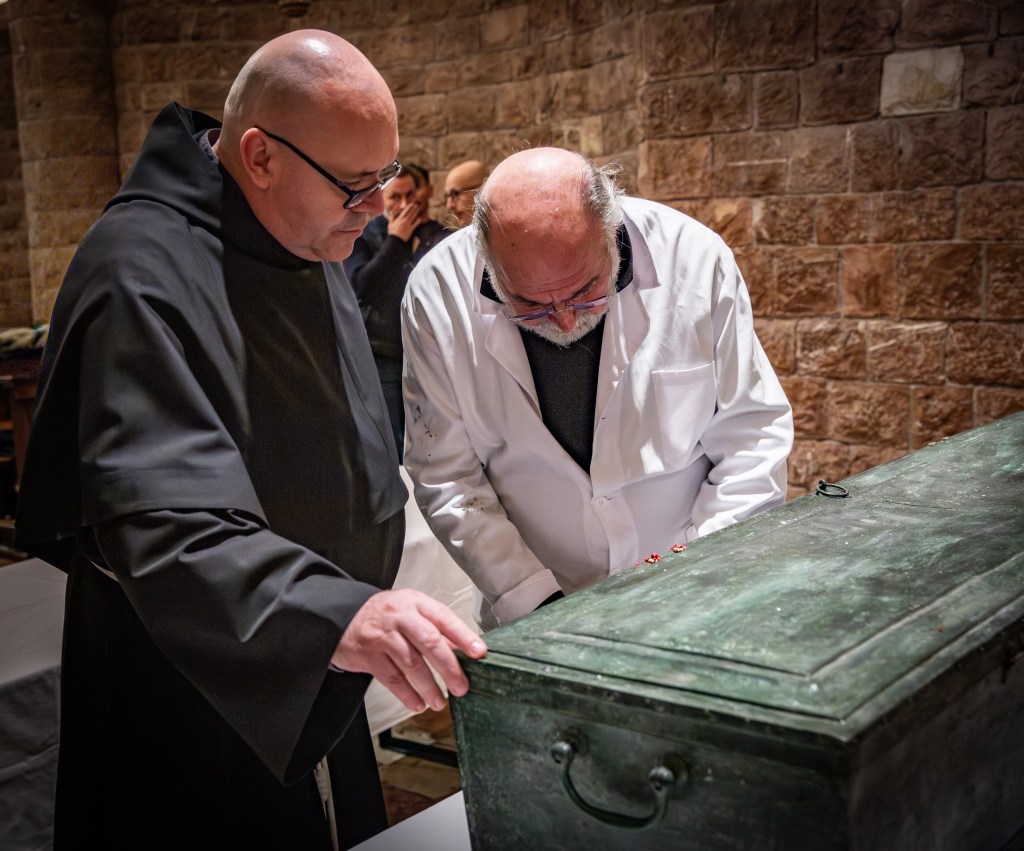 Poi nel 1978 c’è stata una importante ricognizione scientifica. In quell’occasione, per un giorno, alcune persone hanno potuto vedere le ossa del Santo, nella Sala del Capitolo.