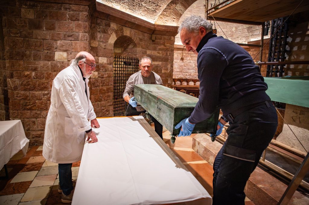 Il corpo sarà protetto da una teca antisfondamento, che potrà essere toccata. Sarà collocata nella Basilica inferiore, davanti all’altare.