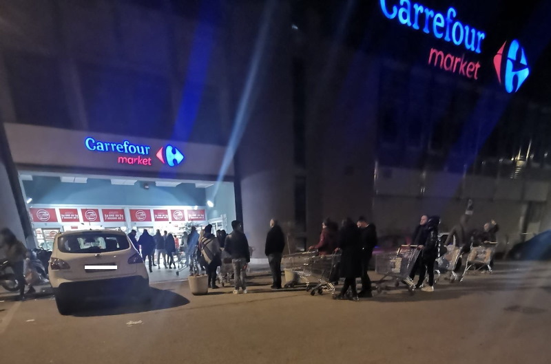 In fila, col carrello da riempire, in alcuni casi senza nemmeno mantenere la distanza di sicurezza di 1 metro. Supermercati aperti h24 presi d’assalto ieri sera e nella notte in Italia dopo l’annuncio del premier Giuseppe Conte di realizzare una unica “zona protetta” a partire da martedì mattina. Ed anche a Terni in tanti si sono riversati sul supermercato Carrefour di via Bramante, l’unico negozio di alimentari aperto 24 ore su 24.