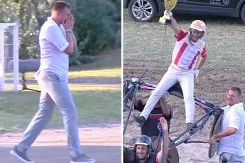 Il fuoriclasse, dopo il trionfo firmato dal driver italiano Carmine Piscuoglio, è entrato in pista senza trattenere le lacrime: ha abbracciato il driver e gli altri membri dello staff prima di ‘complimentarsi’ con il cavallo, ‘battezzato’ con un nome traducibile più o meno con Demone dell’Est, secondo i media serbi