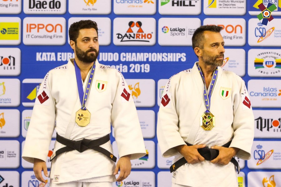 Non c’è due senza tre. Ed anche per Stefano Proietti ed Alessandro Varazi, questo modo di dire ha trovato la sua conferma puntuale. È accaduto a Las Palmas in occasione del campionato d’Europa di kata al quale hanno partecipato 228 judoka di 17 nazioni e la coppia azzurra, specializzata nel “Katame no kata”, forme e principi della lotta a terra, hanno conquistato il titolo europeo per il terzo anno consecutivo. Si tratta di un risultato eccellente, ma che non è arrivato da solo, sono state tre infatti le medaglie d’oro, più una d’argento e due di bronzo, che sono state conquistate oggi, nella giornata riservata alle prove “Open”, con le sei migliori coppie selezionate dalle prove del giorno precedente, quando ciascuno dei 5 kata si è diviso per fascia d’età in due gruppi. Ed i primi tre del gruppo “Under” con i primi tre del gruppo “Over” hanno concorso al titolo Open. Cinque le forme in gara, tre le medaglie d’oro italiane: Mauro Collini-Tommaso Rondinini nel Nage no kata, Stefano Proietti-Alessandro Varazi nel Katame no kata, Ubaldo Volpi-Maurizio Calderini nel Goshin Jutsu, ai quali si sono aggiunte anche la medaglia d’argento di Giovanni Tarabelli-Angelica Tarabelli nel Ju no kata e quelle di bronzo di Andrea Fregnan-Pietro Corcioni nel Katame no kata e Enrico Tommasi-Giulio Gainelli nel Kime no kata.