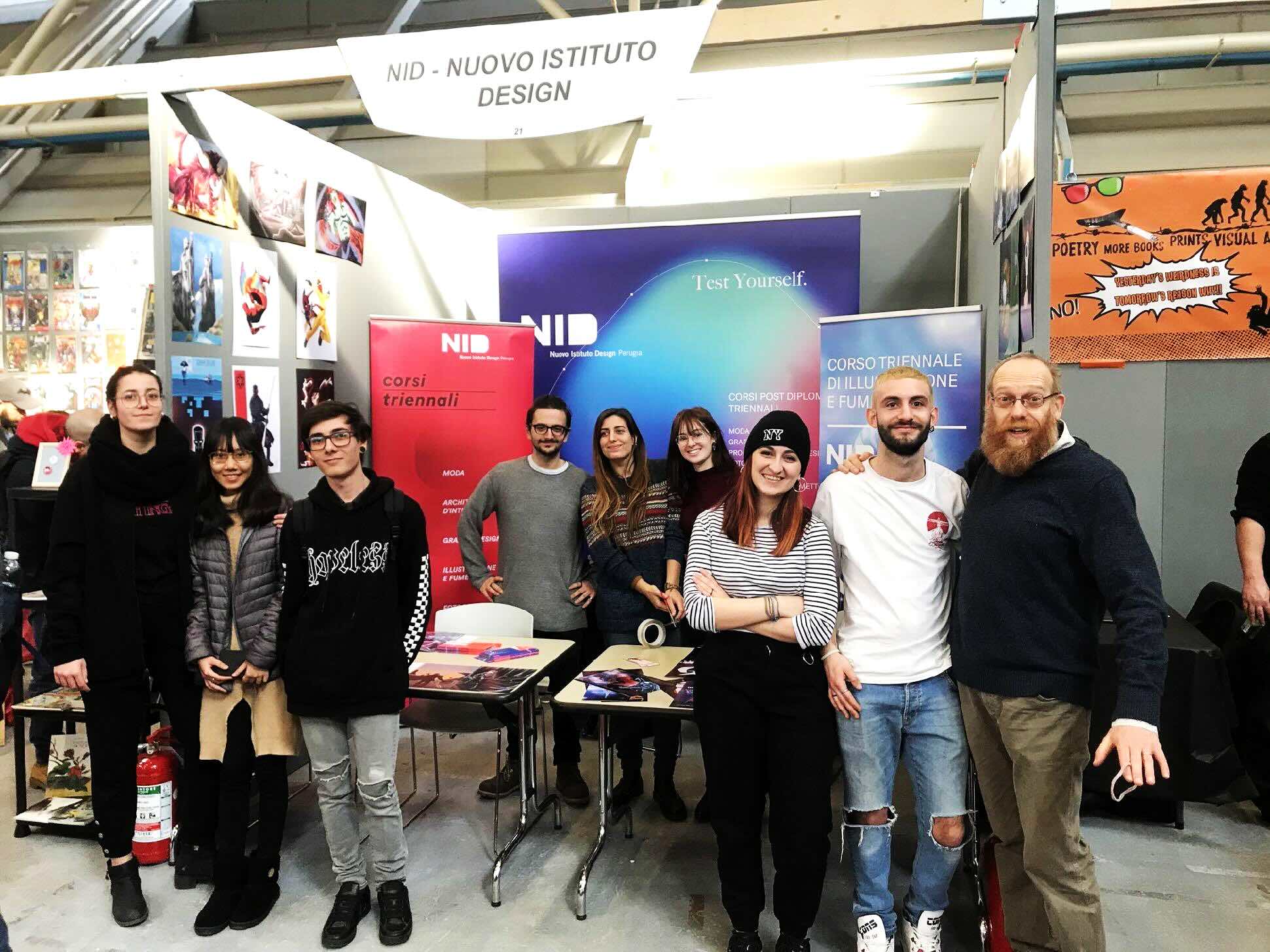 Gli studenti che hanno partecipato al contest da cui nasce la mostra – Mattia Vincenzo Rachiele, Patrick Finato, Benedetta Roani Salari, Martina Cappiello, Alice Campanello, Daniel Favian Condo Chiriboga, Lorenzo Beati, Mattia Esposito, Raffaele Marano, Marta Dominici, Isabella Paganini, Natalia Battaglini, Sara Masserelli, Viola Faltoni, Elisa Bottoni, Edoardo Raichini, Giacomo Scatolini, Carlo Mariniello (terzo anno del corso di Illustrazione e Fumetto), Giacomo Saba, Rachel Nui Sellari, Martina Granata, Sabira Laureti, Cimi Pham, Maddalena Piccioni, Emma Pulcinelli (Master di Illustrazione e Fumetto: dall’idea al libro) – insieme ai loro colleghi del primo (Giulia Malerba, Fusako Sirchio, Andrea Valenti, Giacomo Luzi, Luca Armenti, Alessandro Cordoglio, Matteo Peruzzi), e del secondo anno del corso di Illustrazione Fumetto (Giada Piermarini, Alessandro Di Domenico, Lorenzo Nuri Valeria Venarucci, Mariaelena Duranti, Gennaro Panaro, Beatrice Beltrano, Thomas De Goycoechea, Lucrezia Remoli, Martina Cardamone, Martina Zanola, Massimiliano Fioravanti), presidieranno inoltre lo stand del NID, presentando il proprio portfolio di opere realizzate e dedicandosi a sessioni di live drawing.