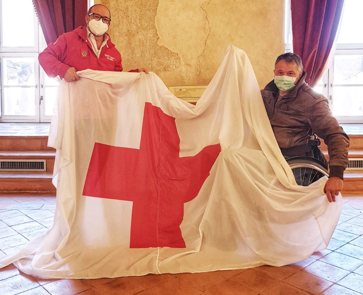 Per una settimana la bandiera della Croce Rossa sventolerà dal palazzo comunale di Foligno. Stamani il presidente del comitato di Foligno, Roberto Pagliacci, l’ha consegnata al sindaco di Foligno, Stefano Zuccarini.