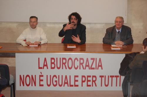 I burocrati si dividono in due grandi categorie: quelli che vengono totalmente assimilati dalla loro funzione (costoro si trasformano anche fisicamente fino a divenire quasi un complemento del loro ufficio, non troppo dissimile dalla scrivania, dalle scartoffie da cui sono circondati, dal computer o dalla stampante) e quelli che salvano la loro identità personale, usando il loro ufficio come osservatorio privilegiato di varia umanità e, particolarmente, dei colleghi assimilati. Questa l’introduzione di Nando Pietro Tomassoni alla presentazione del suo libro “Pillole omeopatiche per la cura della ragione”, racconti di insanità burocratiche. Il libro appartiene, appunto, alla seconda categoria spiega Tomassoni che ha impiegato tutta una vita da funzionario e poi da dirigente di enti pubblici ad allineare perle burocratiche da montare in piccoli gioielli letterari che, una volta in pensione, ha costruito con grande sapienza. Molto il pubblico presente alla Sala Capitolare dell'Istituto d'Arte Leoncillo Leonardi, dove l’assessore alla cultura del Comune di Spoleto Giorgio Flamini ha presentato il volume, pubblico molto attento anche alle testimonianze dell’onorevole Domenico Benedetti Valentini che ha allietato i presenti con un ampia panoramica sui misteri dei ministeri. Pillole di burocrazia anche per Antonio Attinà intervenuto alla presentazione. Applausi per l’inossidabile Mario Leone che ha letto dei brani del libro.