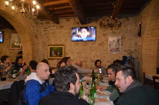 Tra un piatto di fagioli con le cotiche, un trancio di ottima pizza ed un bicchiere di buon vino la serata è andata via alla grande: commenti ficcanti e battute esilaranti hanno sottolineato i momenti clou della puntata che al momento della discesa degli equipaggi ha tenuto tutti con il fiato sospeso come se si trattasse di cora vera.