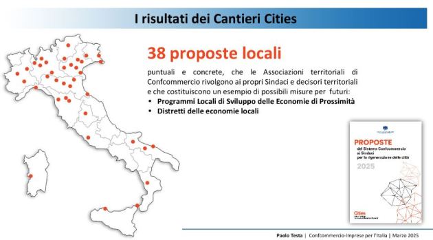 Nel complesso, i dati dell’analisi rendono sempre più preoccupante il fenomeno della desertificazione commerciale delle nostre città, ma il commercio fisico resta vitale e produce comunque esternalità positive di cui le politiche pubbliche dovrebbero tener conto: vivibilità delle città, presidio contro il degrado, attrattività turistica. E proprio in tema di politiche pubbliche, contrastare il fenomeno della desertificazione commerciale è uno degli obiettivi del progetto Cities di Confcommercio per migliorare i centri urbani e rafforzare le economie di prossimità promuovendo il ruolo del terziario di mercato nell’ambito di un nuovo modello di sviluppo urbano basato su sostenibilità, comunità e identità. Queste, in sintesi, le principali proposte di Cities elaborate dalle Associazioni territoriali di Confcommercio.