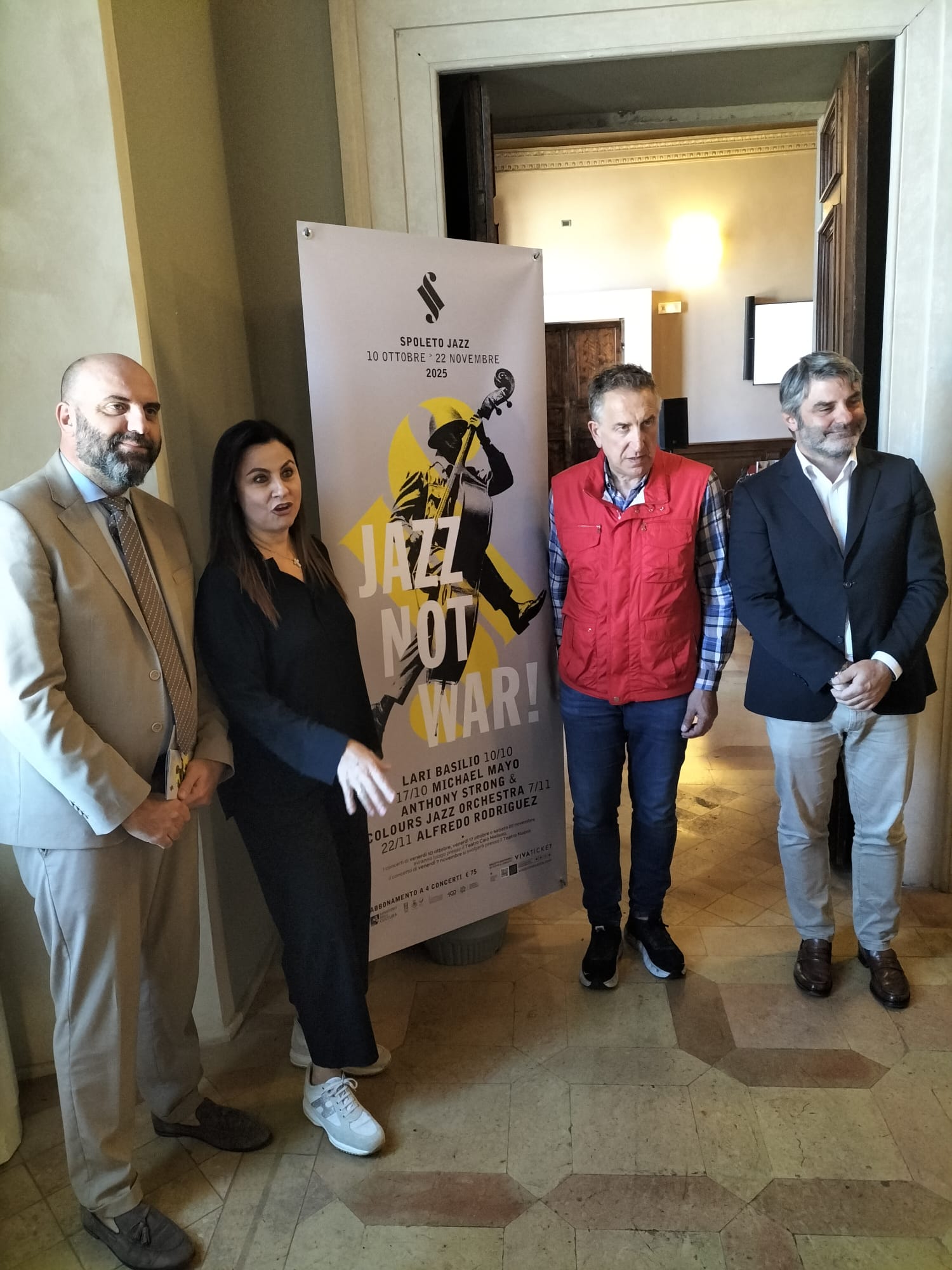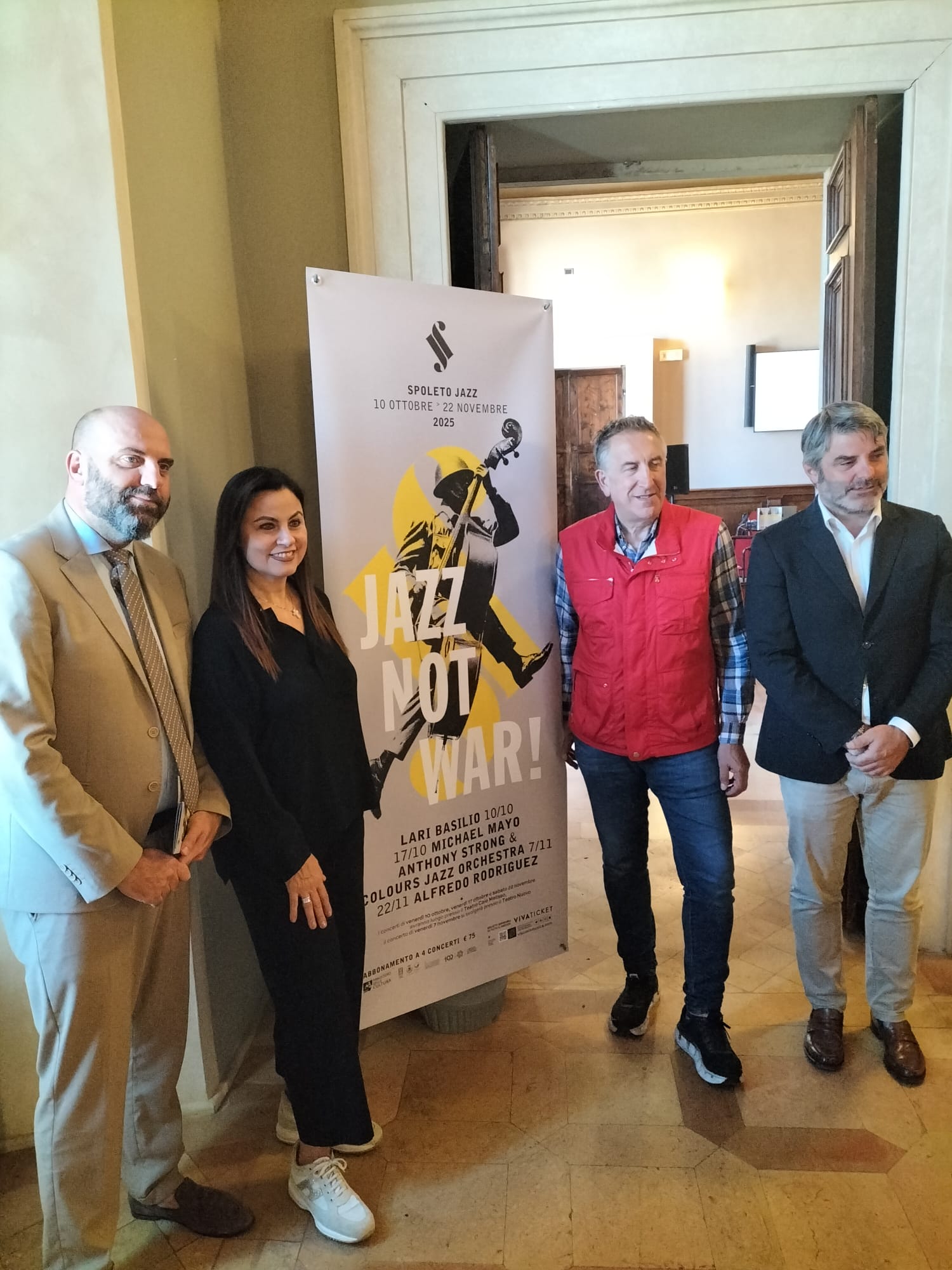 «Spoleto Jazz è entrato ormai a pieno titolo tra gli appuntamenti più attesi e interessanti del nostro calendario culturale – dichiara il sindaco di Spoleto, Andrea Sisti – Questa sesta edizione, intitolata “Jazz not War”, assume un significato ancora più forte e toccante perché celebra il potere universale della musica. In un’epoca segnata da tensioni e conflitti, il jazz, con la sua storia di fusione, improvvisazione e dialogo tra strumenti e culture diverse, incarna perfettamente questo messaggio di speranza e armonia. È anche l’affermazione del nostro impegno a promuovere la cultura come strumento di pace, a sostenere i valori di tolleranza e rispetto che sono l’essenza stessa della nostra città. Spoleto, con la sua storia millenaria e il suo patrimonio artistico, è da sempre un crocevia di incontri, un luogo in cui l’arte e la bellezza hanno sempre trionfato su qualsiasi forma di conflittualità. Ringrazio sinceramente la direttrice artistica Silvia Alunni, che grazie allo staff di Visionimusica e alla collaborazione con il nostro Comune celebra anche questa volta il potere della musica».
