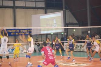 2° SET – Secondo set all'insegna dell'equilibrio fino a quota 13; Saviotti, poi, cerca di lanciare i suoi sul 16-14 ma 3 ace consecutivi di Pagano valgono il +2 dei padroni di casa sul 20-18. La Monini riesce comunque a riacciuffare Squinzano ma una dubbia decisione arbitrale, corredata da un giallo a mister Tardioli senza che il tecnico oleario venga nemmeno richiamato ufficialmente, porta i padroni di casa sul 23-21.